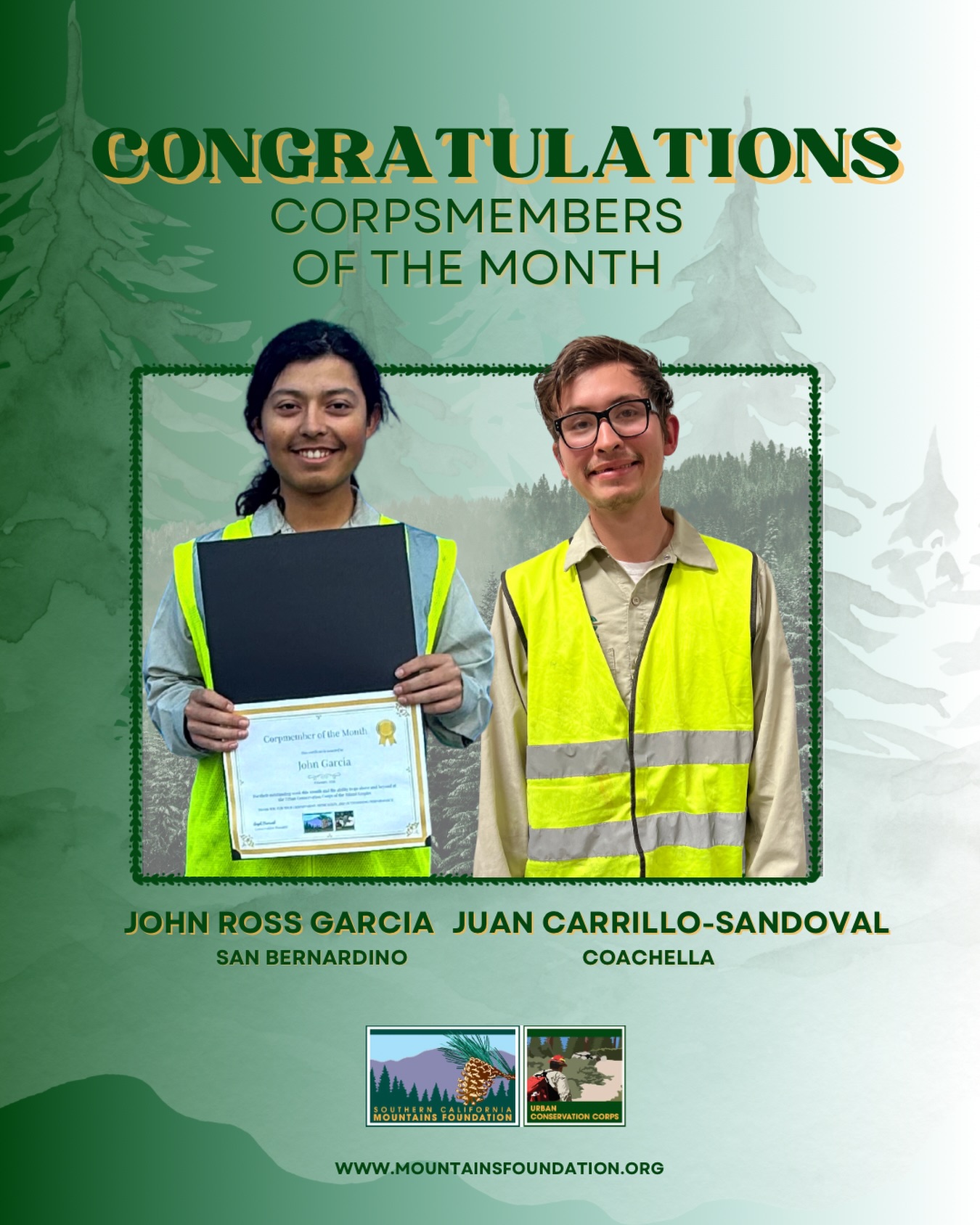 Congratulations to the Southern California Mountains Foundation’s UCC Corpsmembers for the month of February! From San Bernardino, we have John Ross Garcia, who says, “I am 19 years old from Fontana, California. I have been with the Urban Conservation Corps for six months, where I’ve had the opportunity to work with many different personalities and…